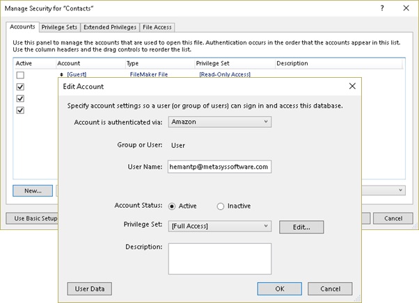 • Set up Accounts in FileMaker file