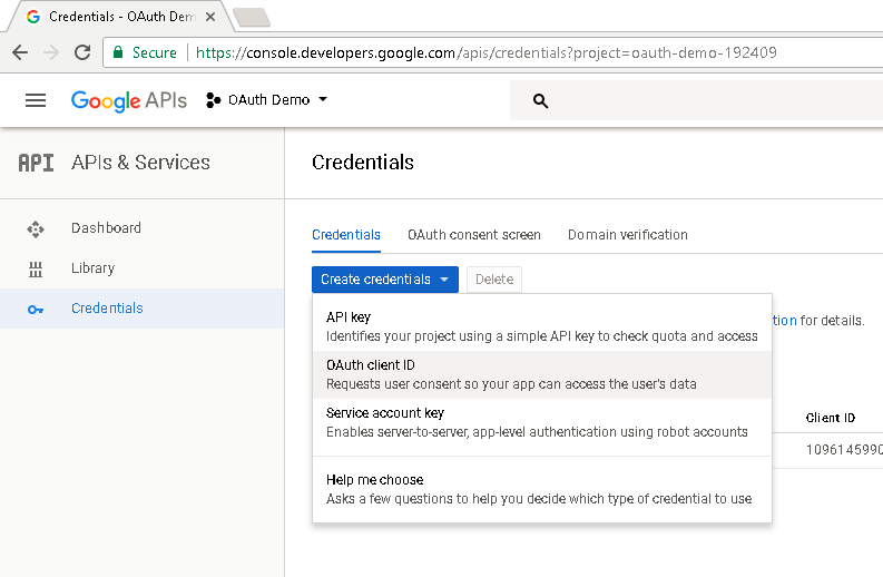 Now that we have enabled OAuth Authentication next we have to Create OAuth Client ID Credentials on provider’s account.