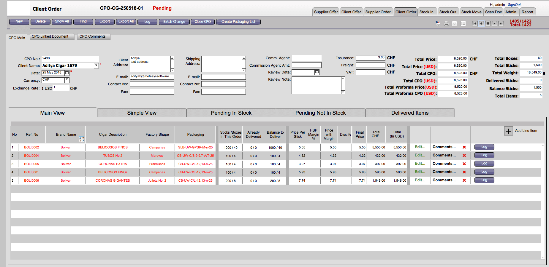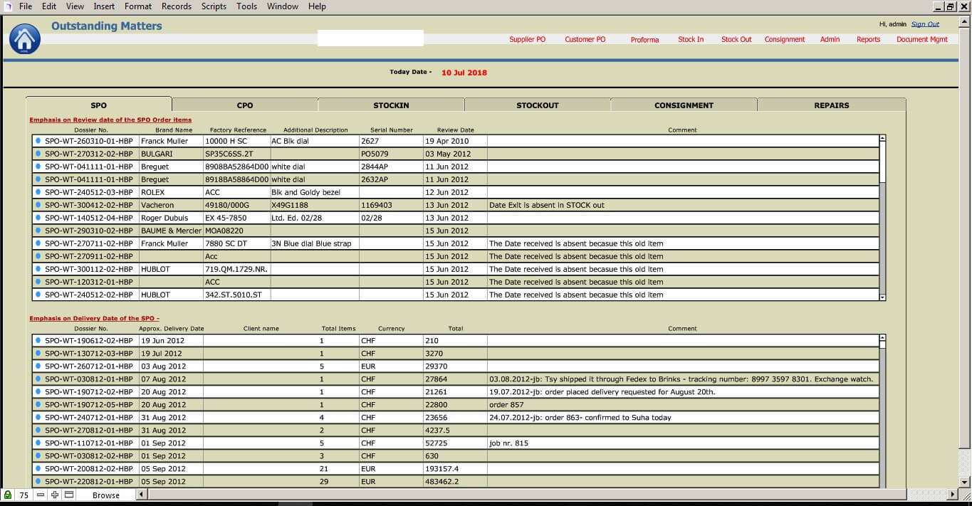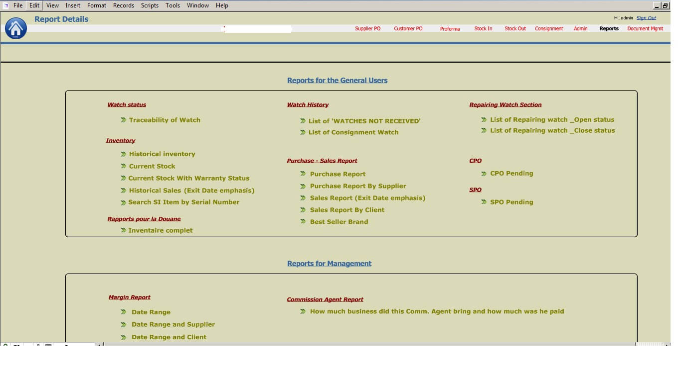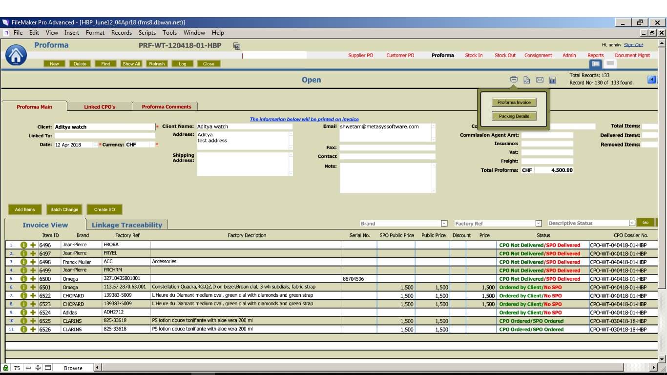 Our client is in International Trade of Cigar and High-end Luxury Watches. MetaSys developed an Inventory management application initially in FileMaker 12. The core functionalities involved managing supplier orders, customer orders, stock in, stock out, consignment and document management. Reporting functionalities included Current stock, Purchase/Sales report, Margin report, Commission report etc. The original configuration included FM clients and servers all hosted on the client’s premises. We migrated the FM server to a hosted site in the UK since the client wanted to reduce his IT footprint to the minimum.