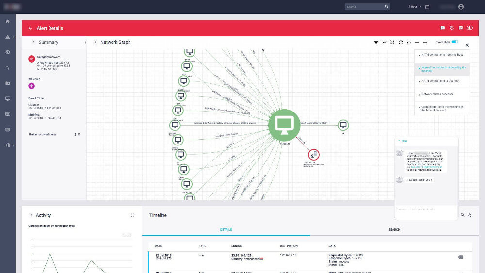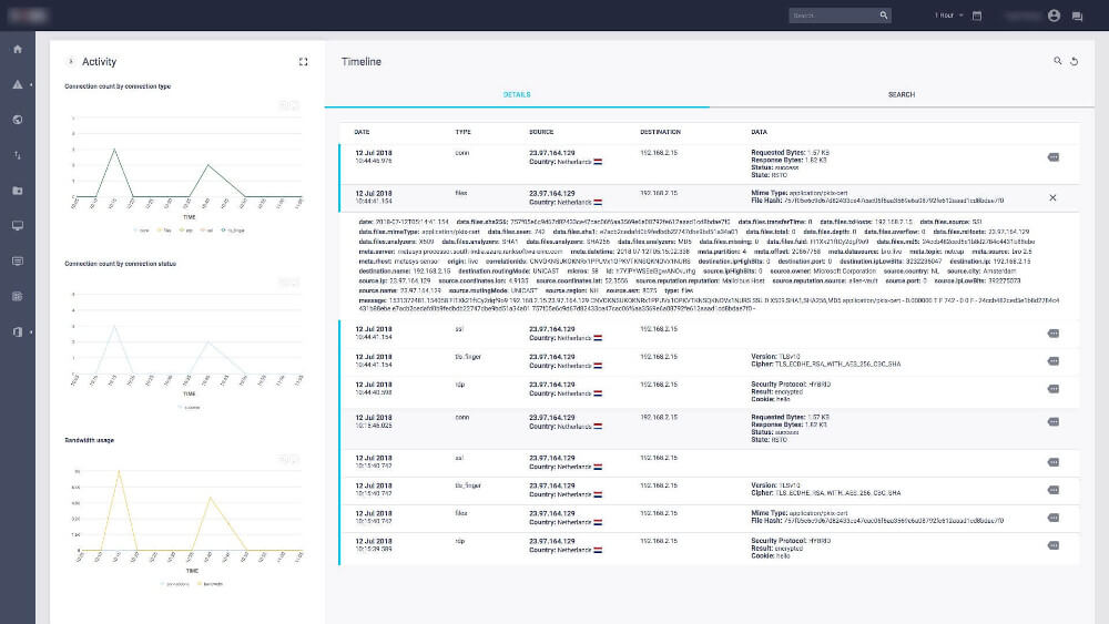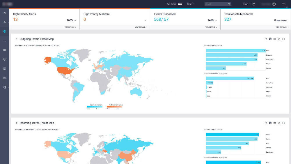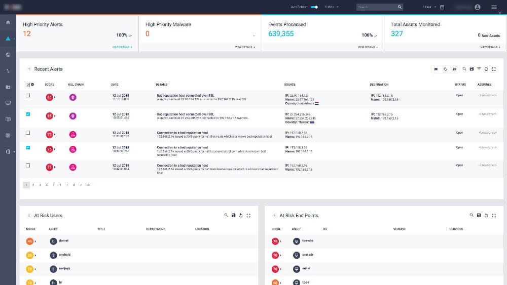 A user-friendly, customizable dashboard presents the data in the form of reports, alerts, graphs with drill-down capability. Clients are able to spot threats in real-time.