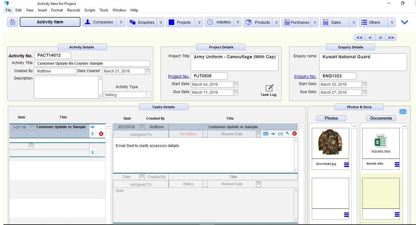 Our client manufactures clothing and equipment on a different continent and supplies to local organisations in the UK. An in-house FileMaker application had been developed to manage their operations. As their business grew they required professional help so they could focus on their core business. MetaSys took over their application, understood their business goals and made the necessary modifications to improve their productivity. The application had several images, files and documents within the FileMaker application. With multiple locales and growth in data, the application was slow. We moved to external data storage which improved performance. We integrated Calendar, Mail Send Receive using Plug-ins. Additional modules were added to extend the application to meet their ongoing business requirements and improve collaboration across their vendors and partners in different locales.