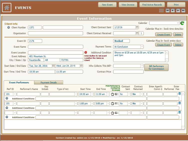 Our client is an entertainment company in the US. We were tasked with upgrading his legacy FileMaker system to FileMaker 13. The application manages the agencies, entertainers and their acts and schedules. We provided a fresh new look and feel using FM13 templates and also added new calendar functionality via plug-ins.