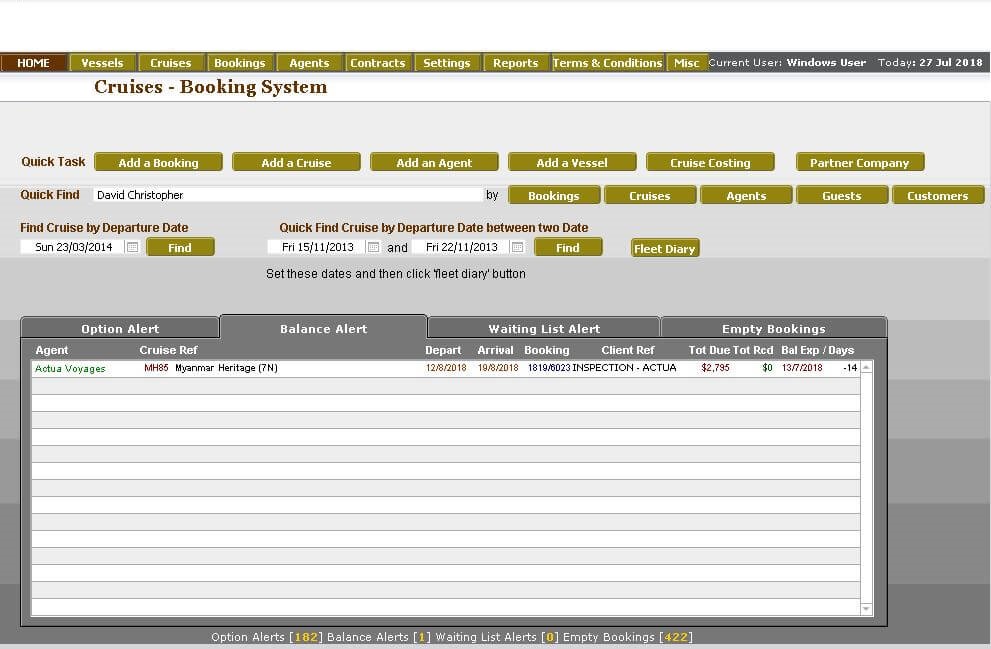 We implemented the backend FM database, the FM clients that contain the desktop reservation, as well as the PHP code for the web front end. This system is currently in production.Since the initial build, several enhancements have been made namely: Integrating separate files for each season into one application, Ability to book cruise segments and Pre and Post Cruise Add-on Tours all managed within the same application. The system manages agents and their commissions.