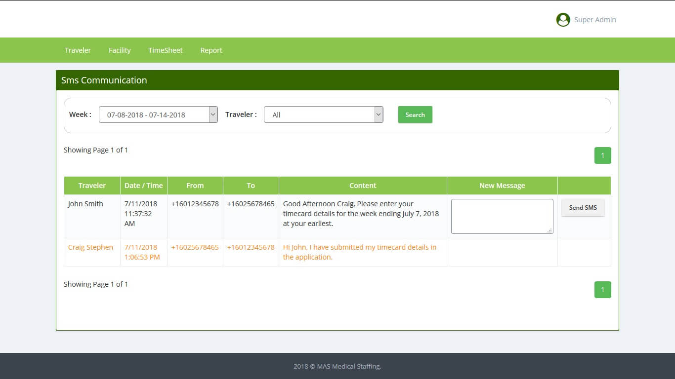 The system sends periodic reminders to staff about missing work details via a voice call and SMS. The two way SMS communication between the user and the administrator is integrated into the online tool.