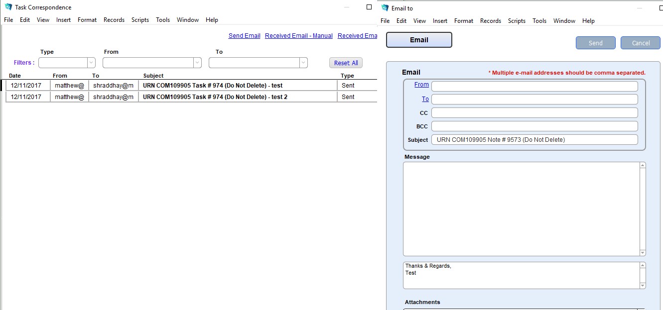 Initially developed on FileMaker 12 the application is now upgraded to FM16, 360Works E-Mail Plugin.
