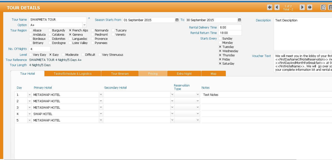 Our client is a cycling tour company in France. They required us to create an application that modelled their business flow of booking passengers along with their various partner interactions for hotels, bike rentals, passenger details, tour details etc.