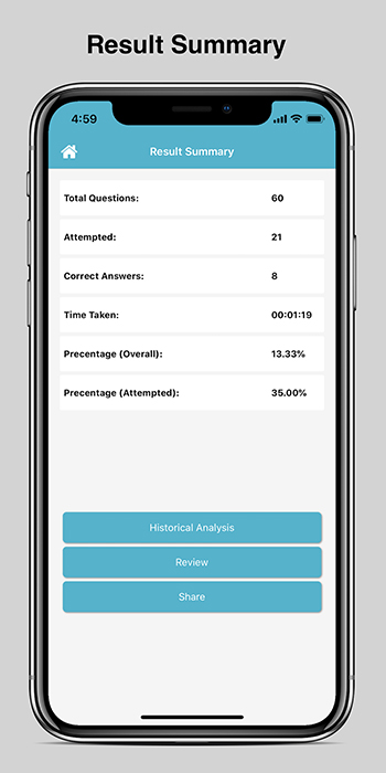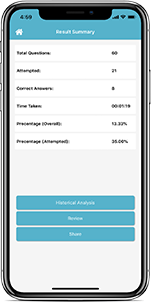 In-depth review of attempted questions and correct answers.