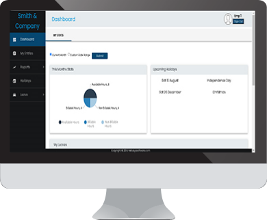 This is a cockpit-like view of the responsibilities assigned to each person in the company. It is a brief description of billed or unbilled time and the number of days of vacations remaining. While an individual contributor will only be able to see their data, team leaders & project managers will get a summary for the particular team/project. -