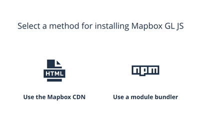 We describe the steps using the ‘npm’ module bundler for installing Mapbox GL JS.