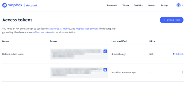 - a. Once the style is published,click on the ‘Share’ tab on the top-right corner of the Mapbox Studio. Here you can see a dialog where you can find your ‘Your style Url’ and ‘Your access token’.