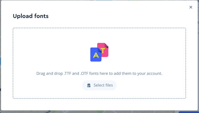 - b. Clicking on the Upload new font, you can see a new dialog with the title ‘Upload fonts’ here you can drag new fonts with extension ‘.TTF’ and ‘.OTF’.